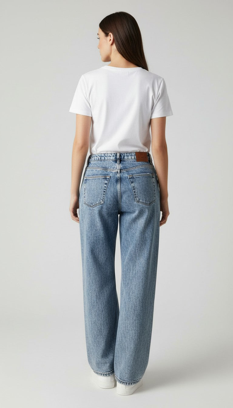 Premium 100% cotton wide‑leg jeans featuring distressed knee openings and a relaxed, vintage-inspired look. Made In Colombia.
