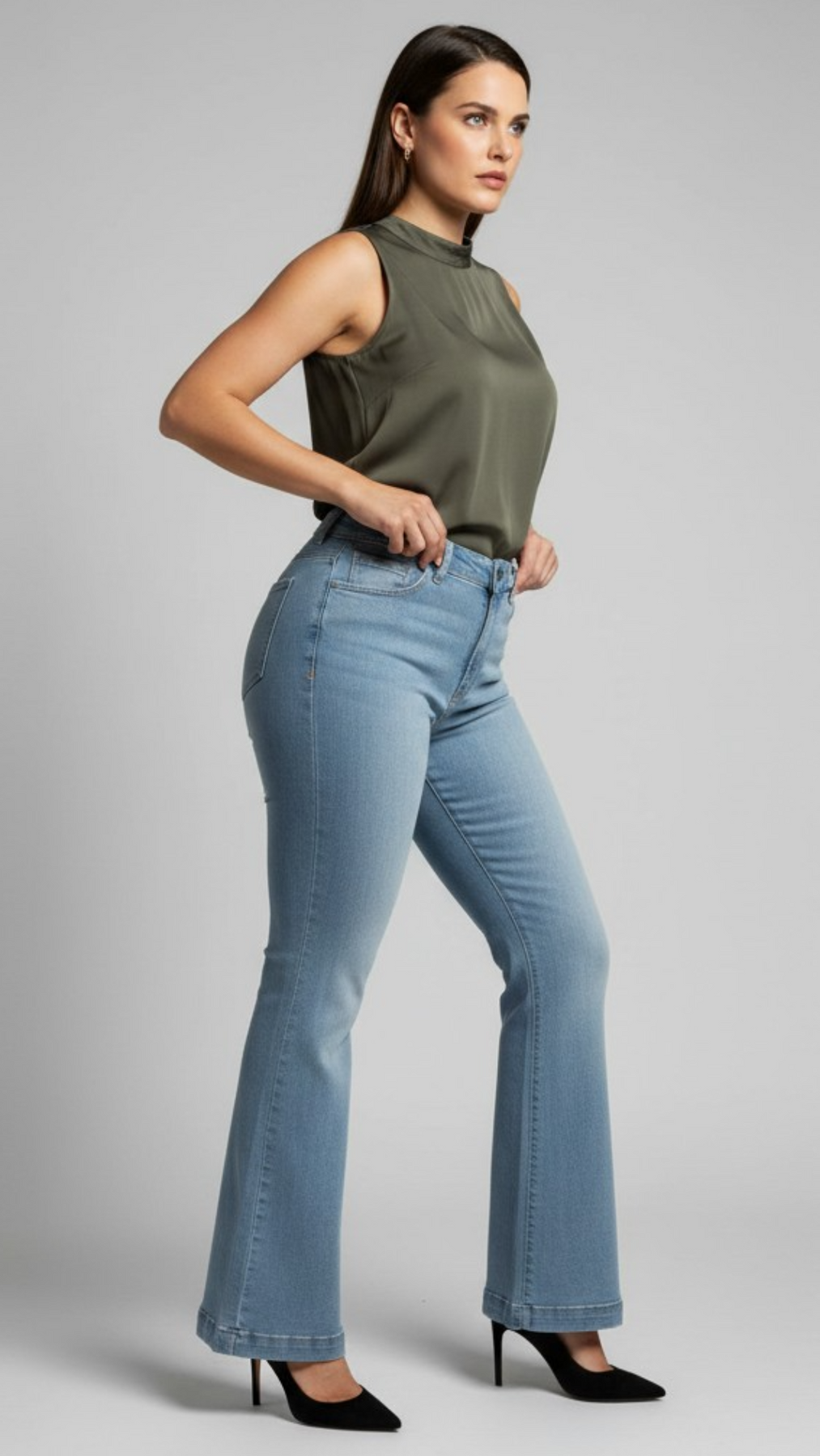 Light Wash Boot-Cut Jeans – Push-Up & Tummy-Control Fit