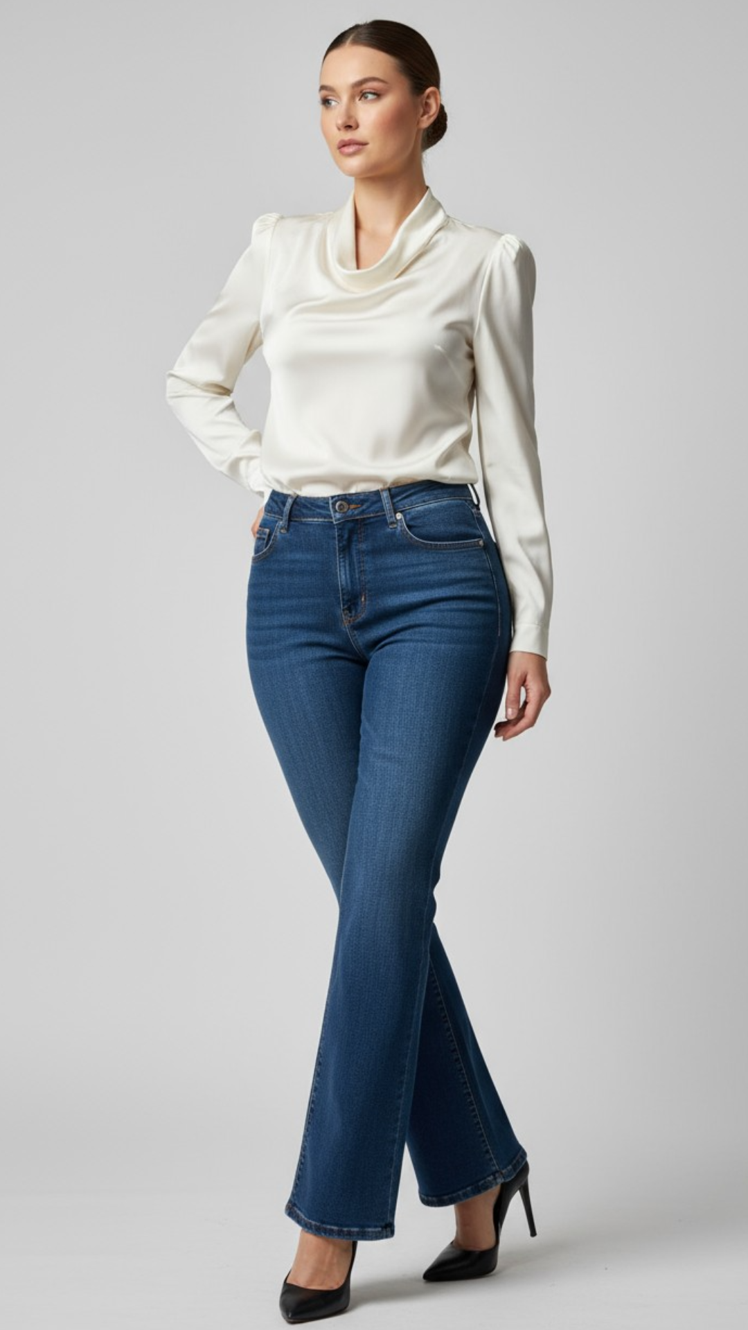 For a chic and polished vibe, tuck in a blouse or fitted top and add a belt to define the waist. Finish with ankle boots or heels for an effortless, stylish look that works for brunch, work, or a dinner date.