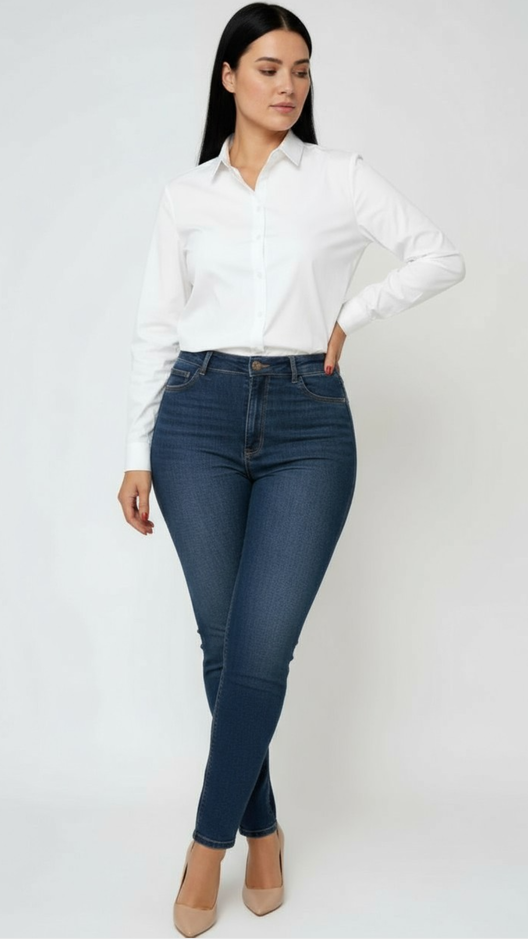 Tummy control jeans are designed to shape and enhance natural curves without feeling restrictive. Made with high-quality stretch fabric, they provide gentle support around the waist and hips while allowing easy movement. The structured yet flexible design smooths the midsection without squeezing too tight, making them comfortable for all-day wear.