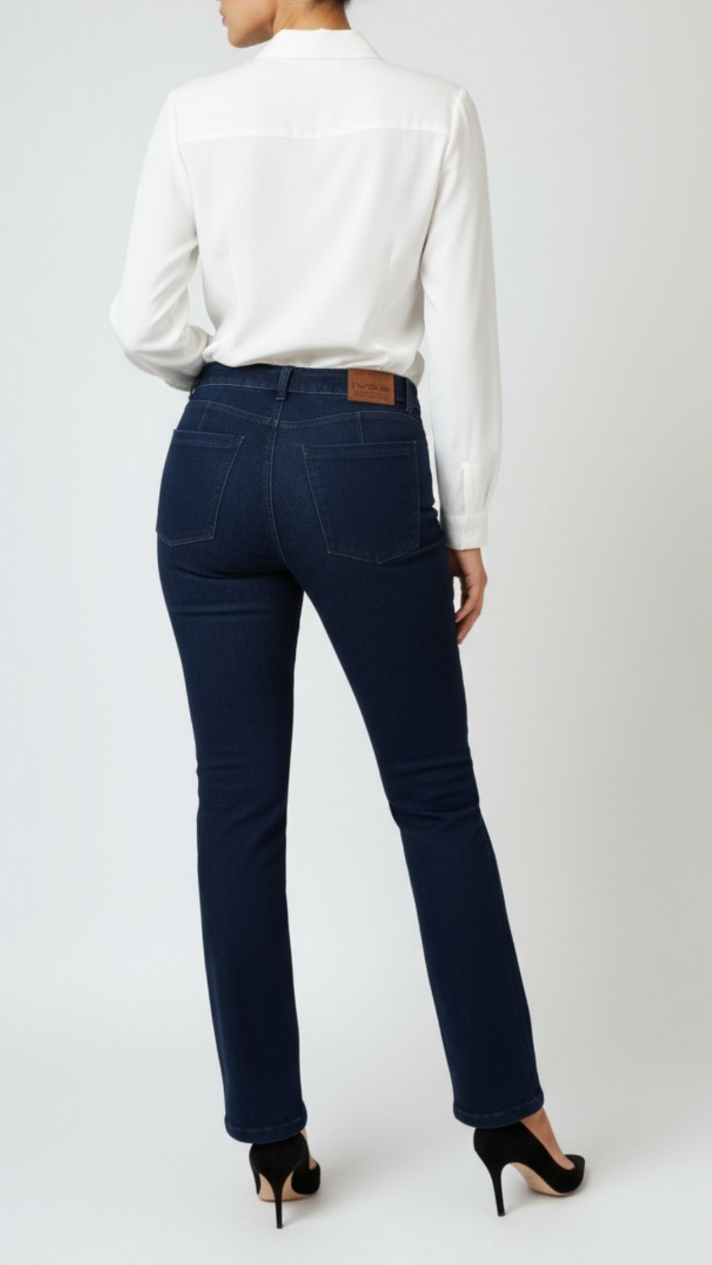 Casual Meets Chic: Elevate your look with these navy straight-leg jeans, featuring push-up technology and tummy control support. Made with scratch-resistant premium denim in Colombia, they bring a perfect blend of versatility and sophistication.