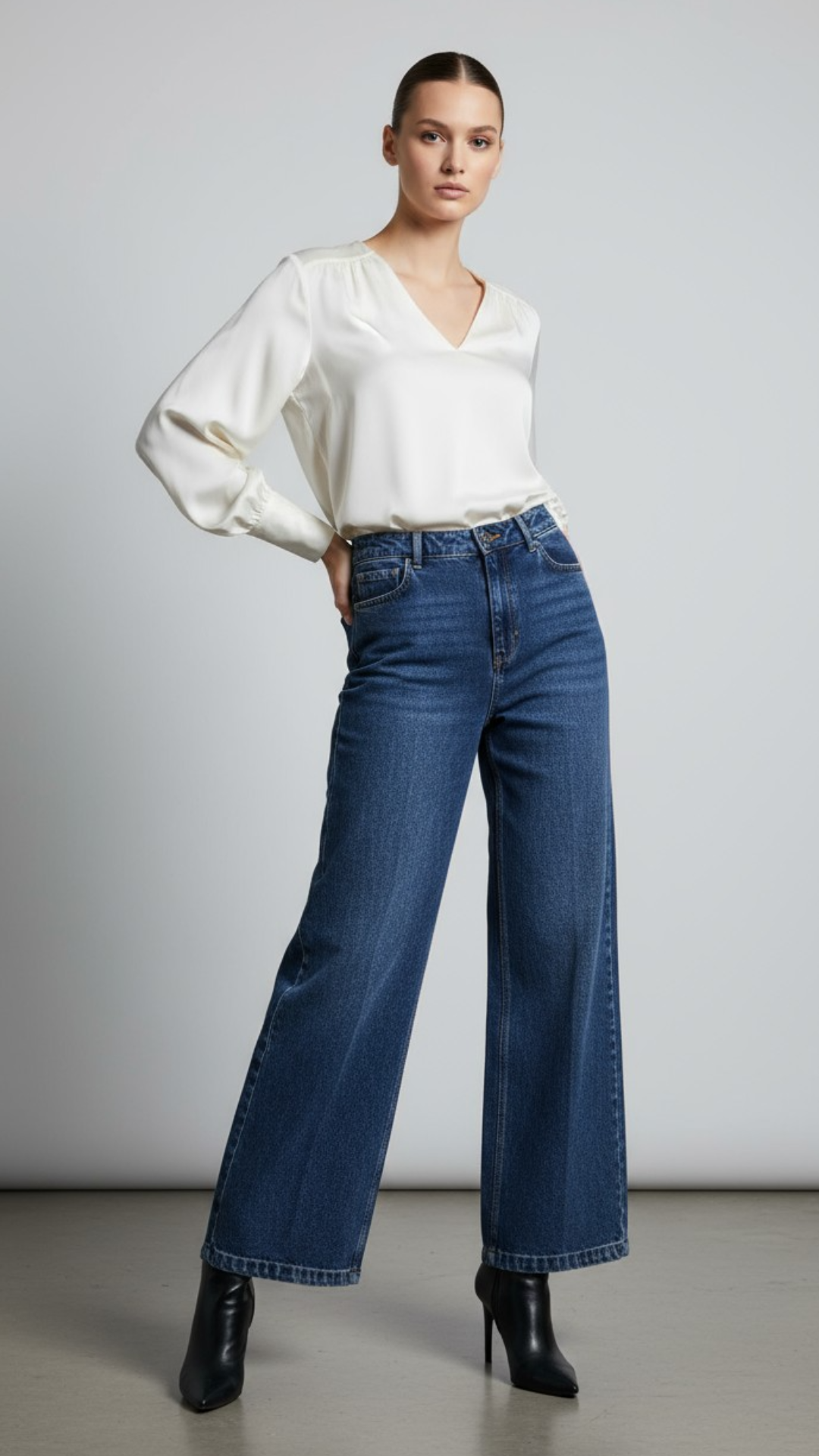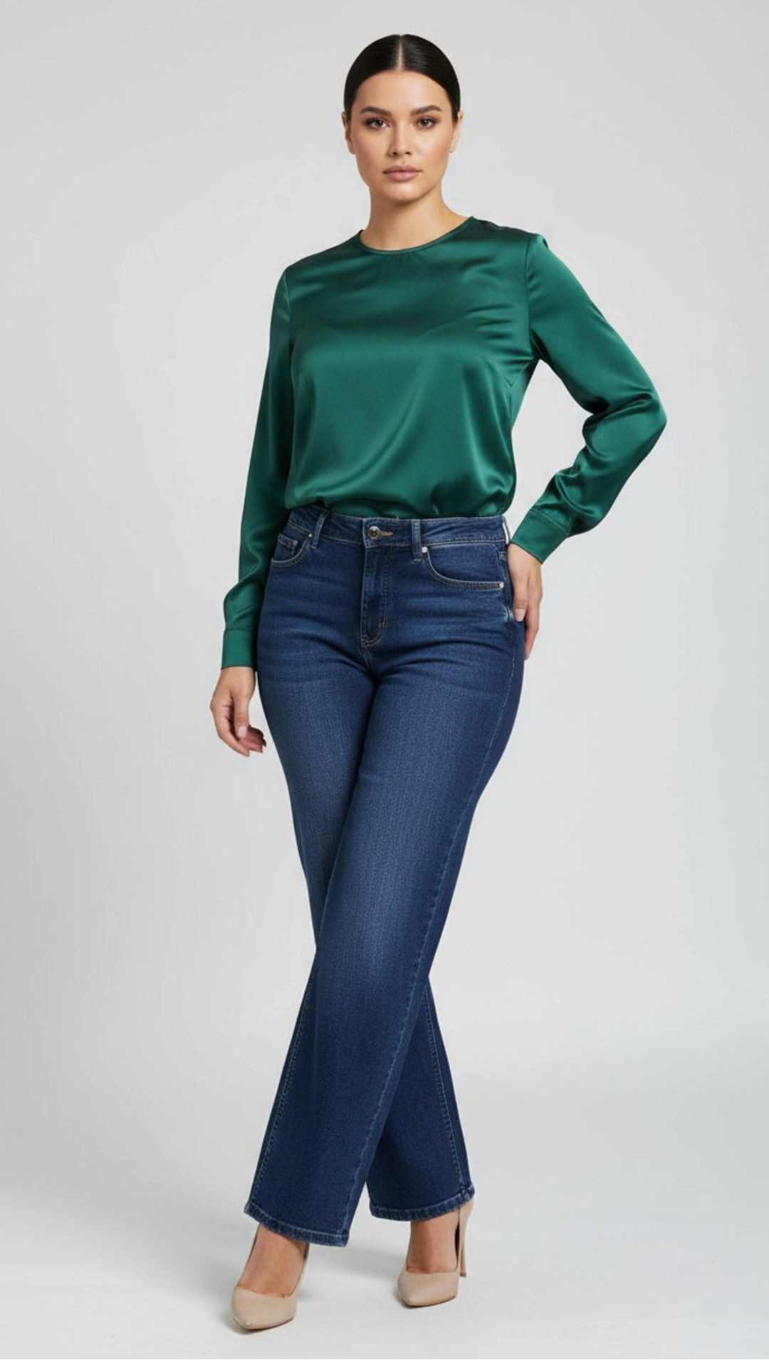 These jeans aren’t just for casual or work settings; they can easily transition into chic evening wear. For a romantic date night or a night out with friends, pair your jeans with a silky blouse, stylish heels, and bold statement accessories. The combination of skinny or high-waisted flare jeans adds sophistication and elegance, while the silk top elevates the look with a touch of glamour. Whether you're dining at a restaurant or going out for cocktails, this outfit ensures you look effortlessly chic, confident, and comfortable all night long.
