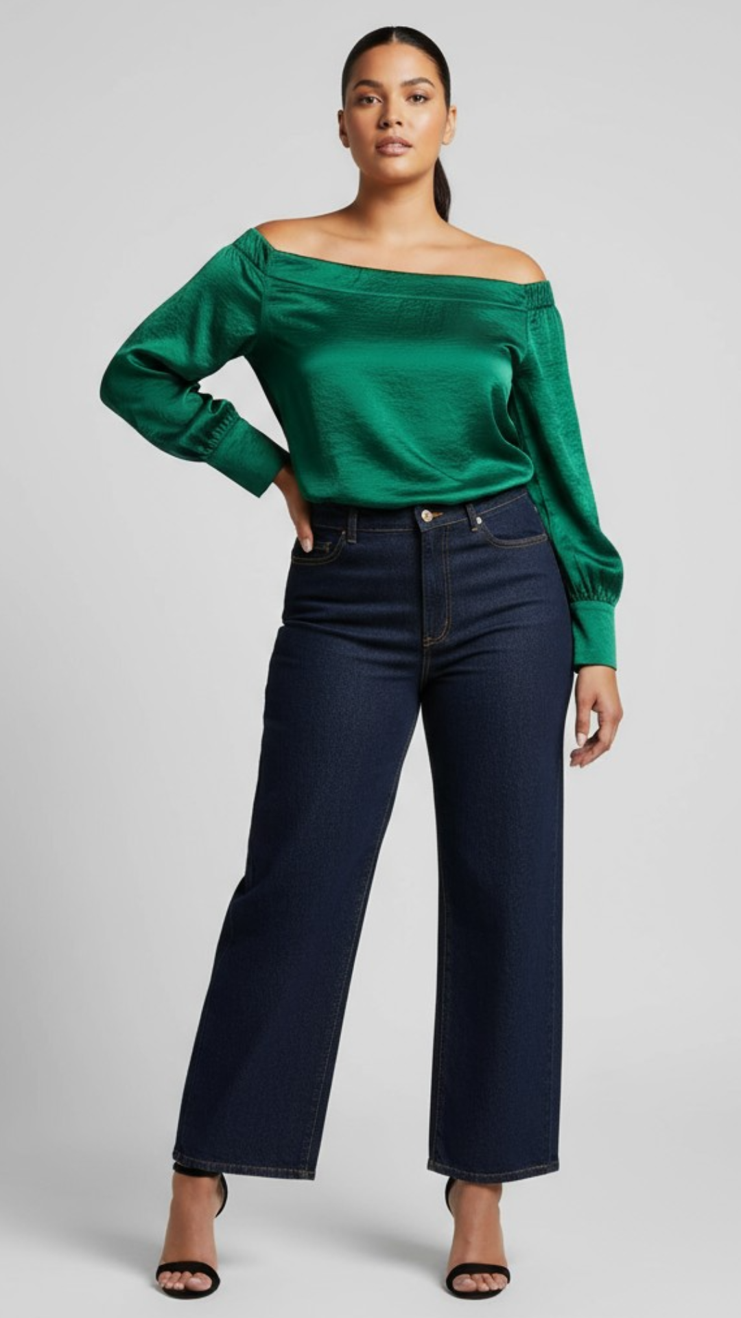 Hourglass figures look best in skinny or high-waisted straight-leg styles, which hug the waist and hips while maintaining a smooth and structured appearance. These styles enhance natural proportions for a polished and stylish fit.
