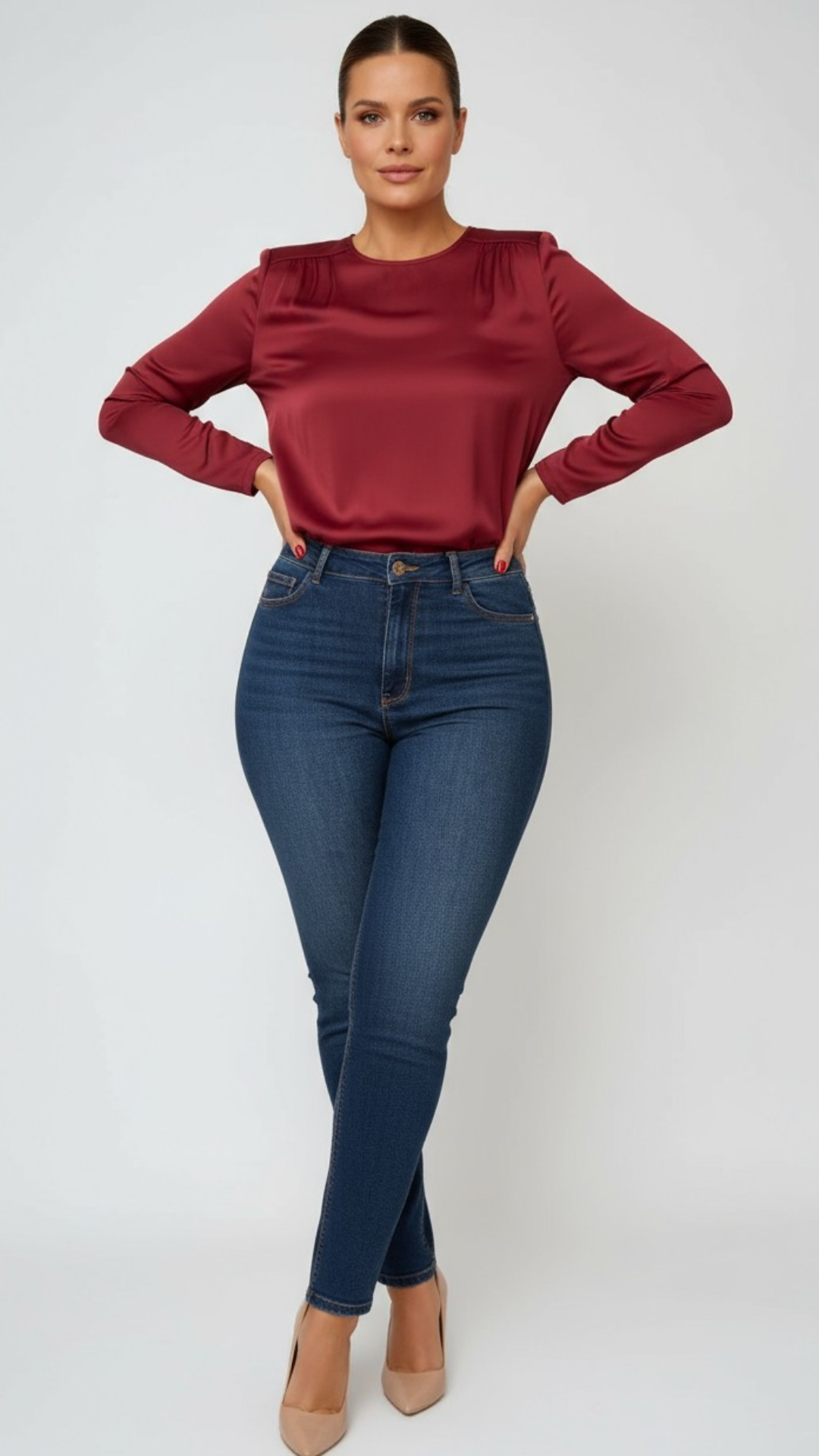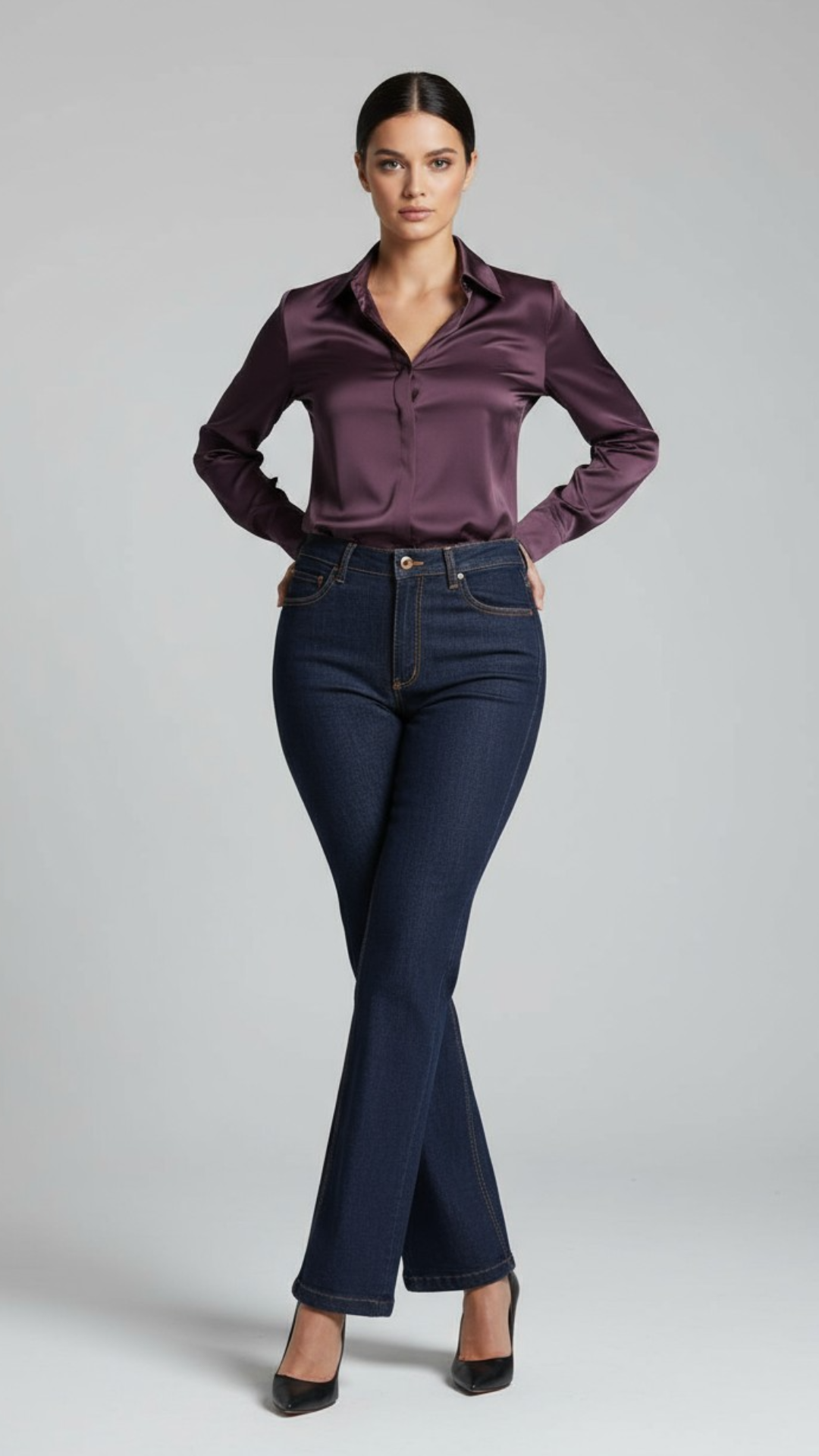 These jeans aren’t just for casual or work settings; they can easily transition into chic evening wear. For a romantic date night or a night out with friends, pair your jeans with a silky blouse, stylish heels, and bold statement accessories. The combination of skinny or high-waisted flare jeans adds sophistication and elegance, while the silk top elevates the look with a touch of glamour. Whether you're dining at a restaurant or going out for cocktails, this outfit ensures you look effortlessly chic, confident, and comfortable all night long.