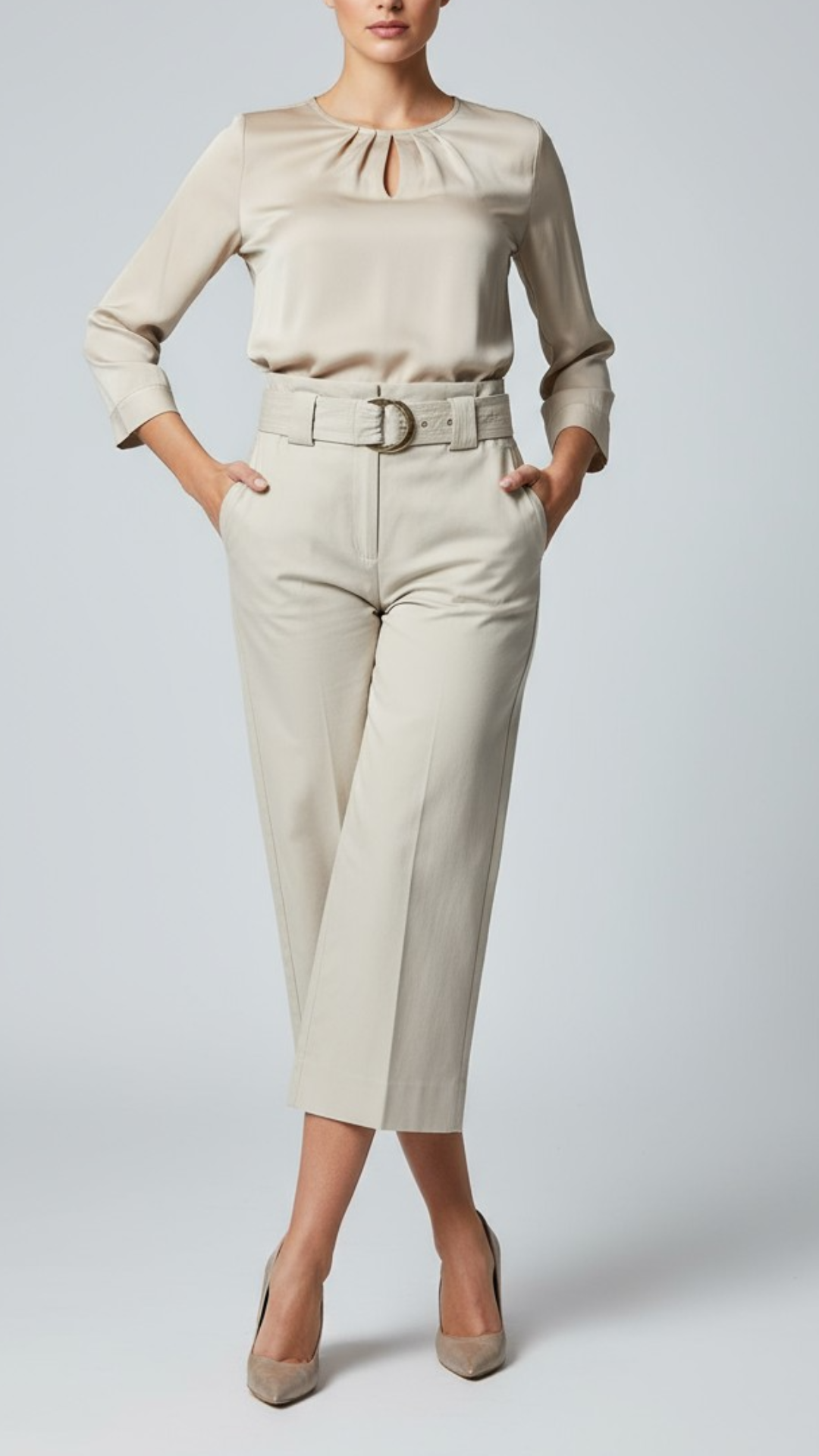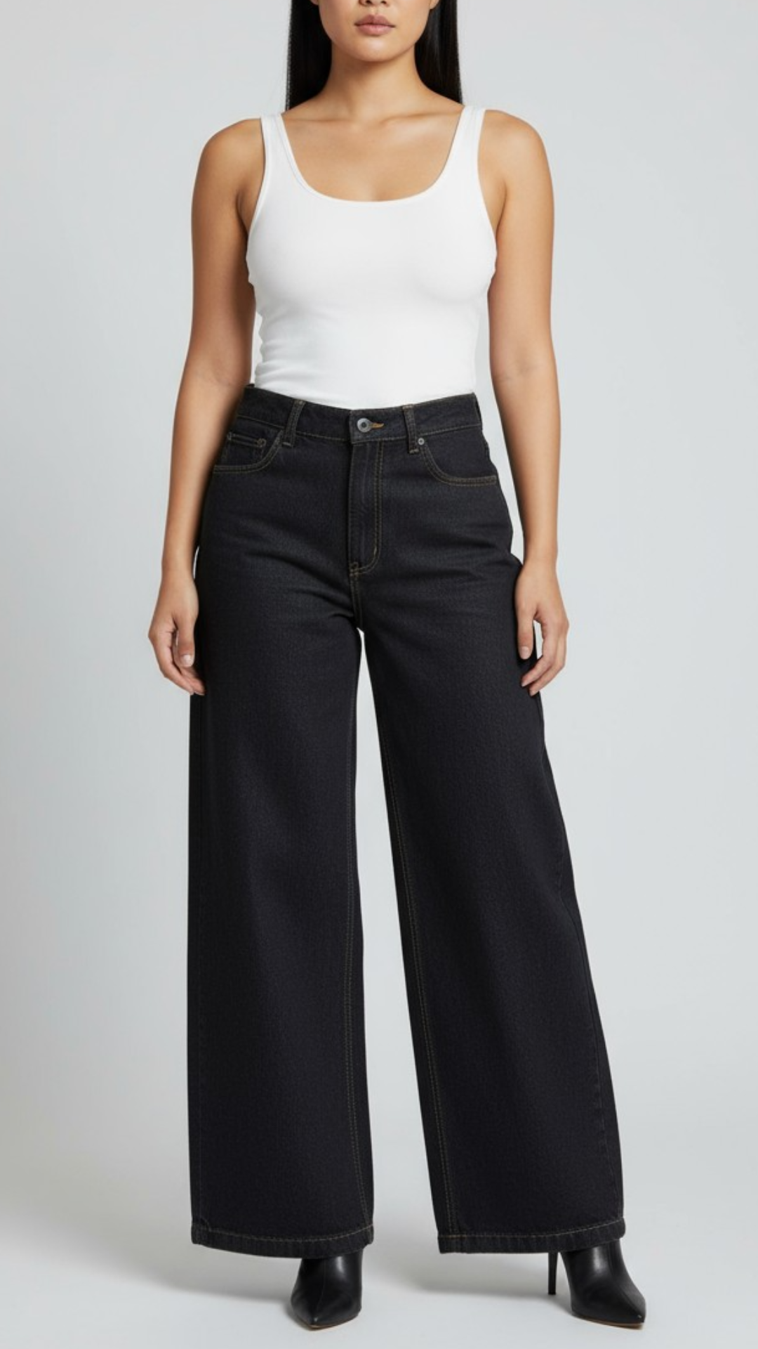 Hourglass figures look best in skinny or high-waisted straight-leg styles, which hug the waist and hips while maintaining a smooth and structured appearance. These styles enhance natural proportions for a polished and stylish fit.