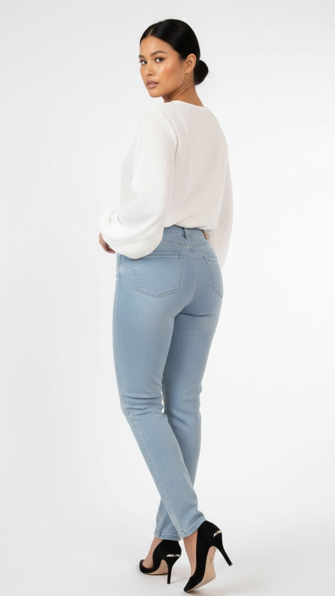 The light wash adds a fresh, modern touch that pairs well with a variety of tops and shoes, making styling effortless. Whether dressing up with heels or keeping it casual with sneakers, these jeans bring comfort and confidence to any outfit. With their premium fabric and flattering fit, they’re a must-have for those who love a blend of fashion and function.