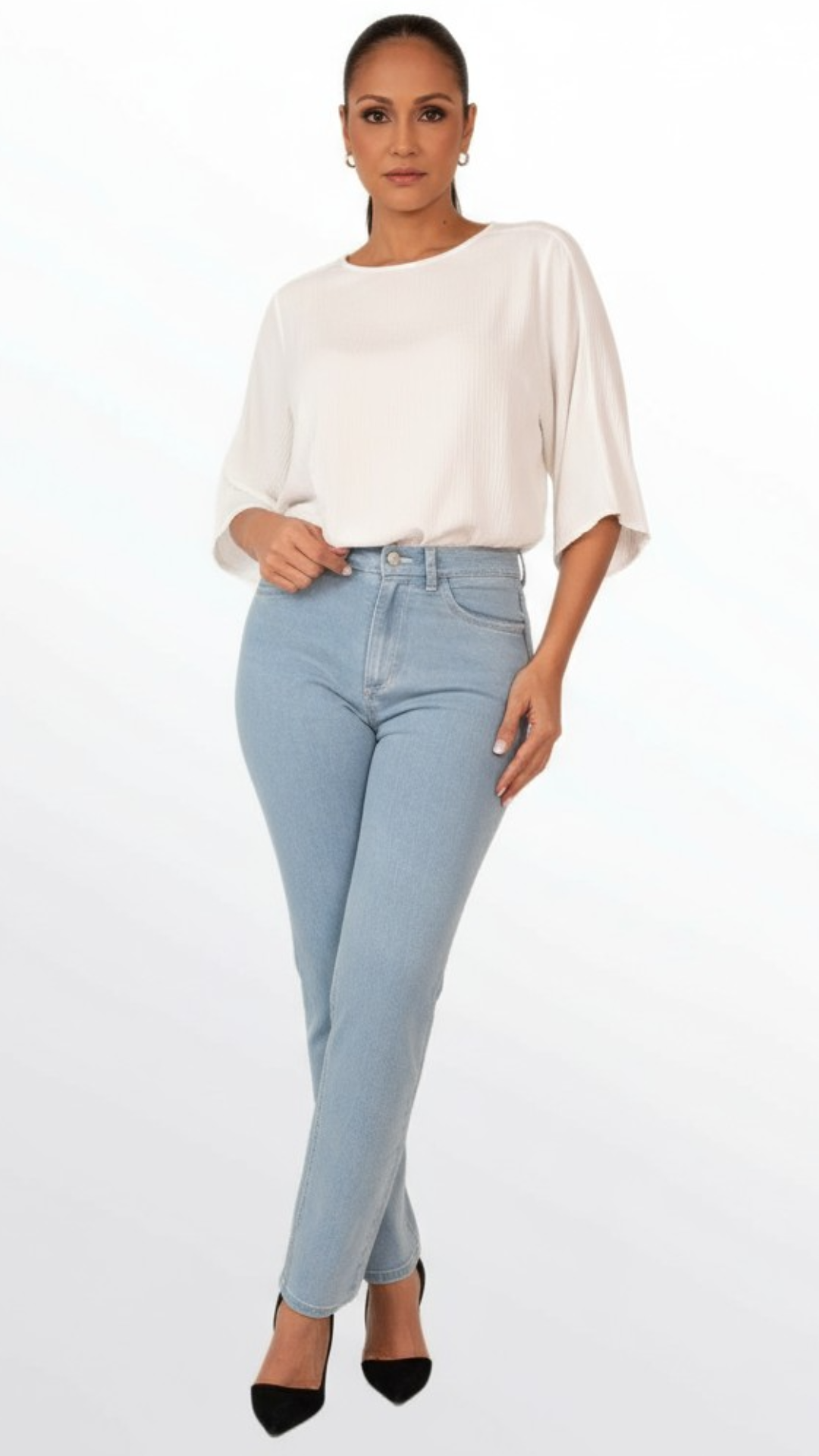 Straight-leg jeans offer a perfect mix of style, comfort, and versatility. Their timeless design flatters different body types, creating a sleek and balanced silhouette. The push-up and tummy control features provide gentle support, enhancing curves and creating a smooth, sculpted look. The straight-leg cut provides ease of movement while maintaining a structured fit, making them a great choice for both casual outings and dressier occasions.