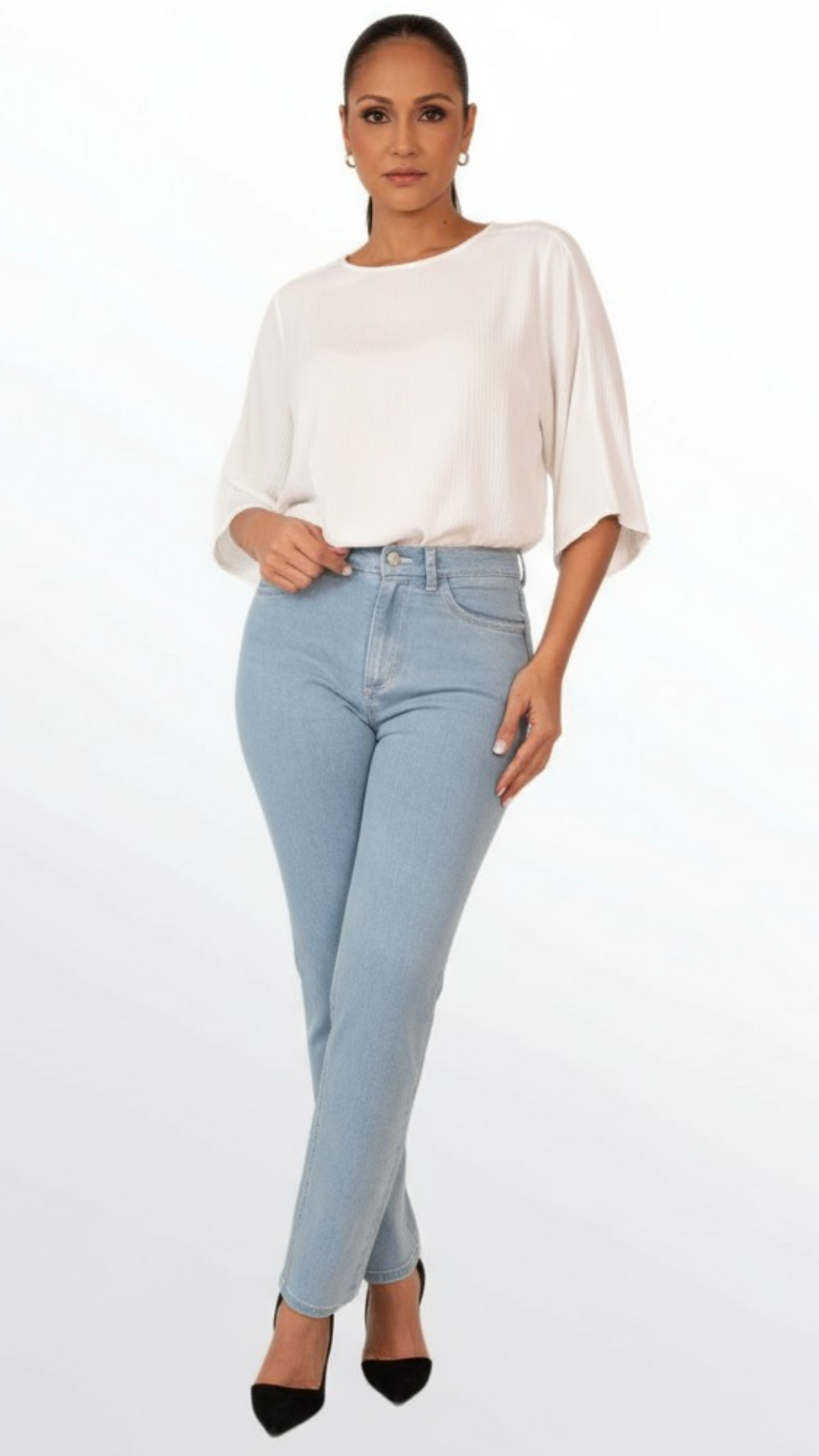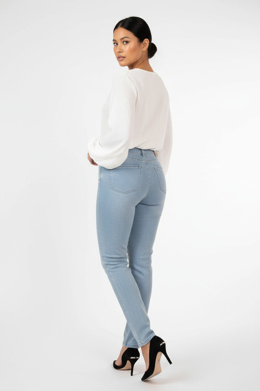 Upgrade your wardrobe with light blue straight-leg jeans that offer the perfect blend of style, comfort, and support. Designed with a flattering fit, these jeans feature push-up and tummy control effects to enhance curves and create a sleek silhouette. Their versatile design makes them easy to pair with any outfit, from casual to dressy looks. Made with high-quality fabric, they provide all-day comfort while maintaining their shape. Don’t miss out on the perfect jeans that combine fashion and function. Shop now and experience the confidence-boosting fit of these must-have jeans today!