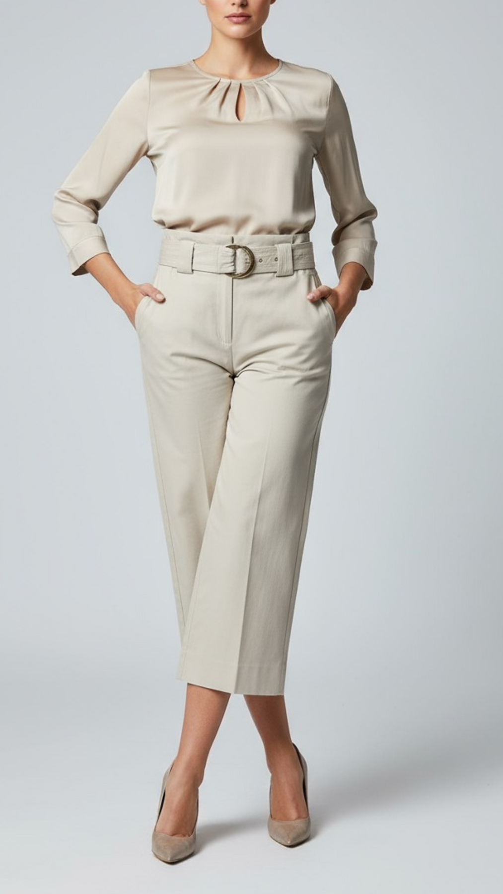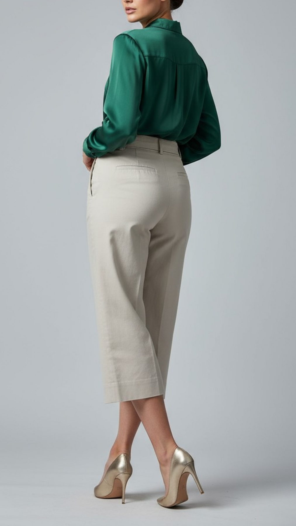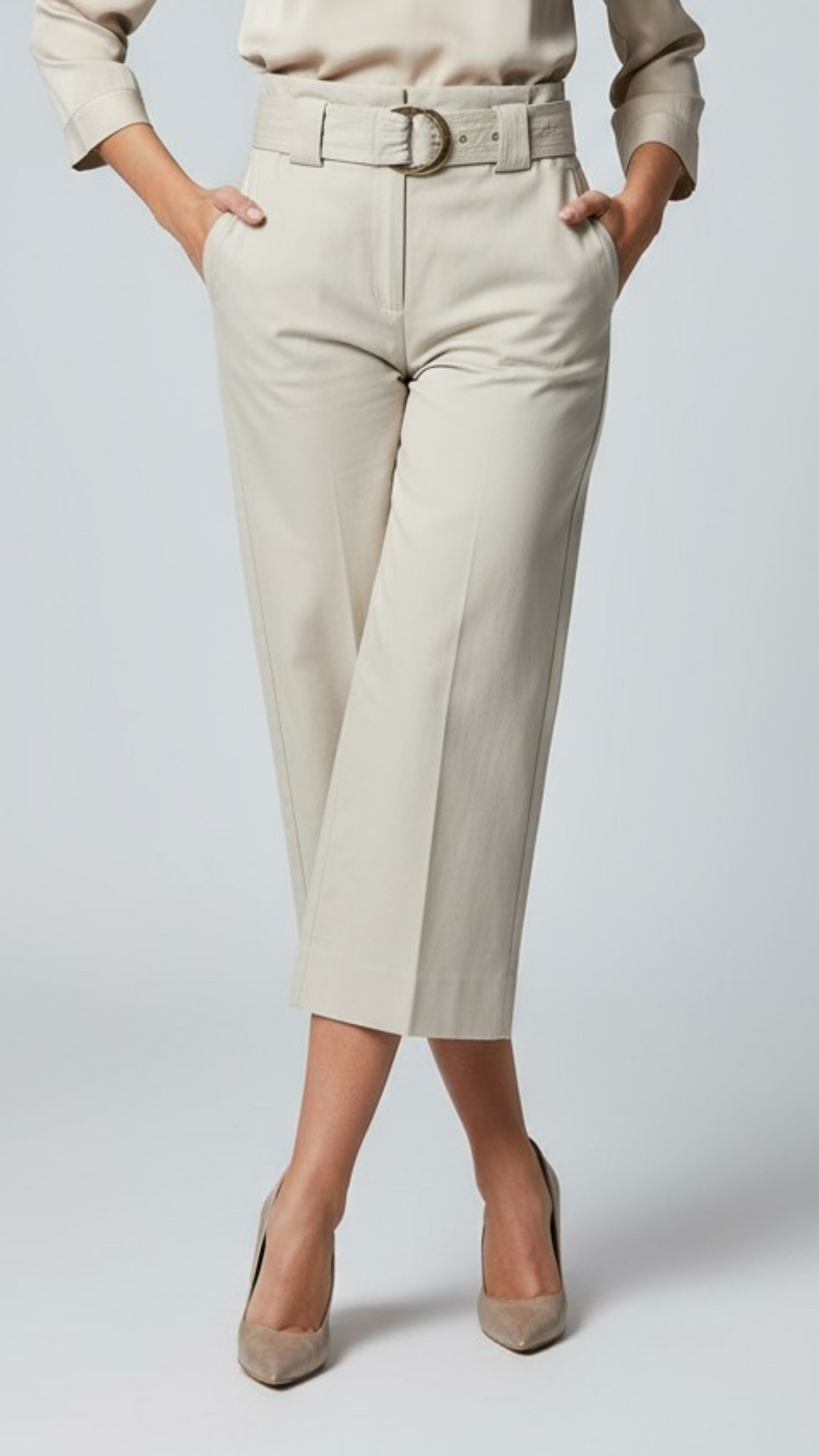 Capri / cropped style. Ultra Soft Comfort: Crafted for unparalleled comfort, these Capri pants are made with premium cotton fabric blended with a hint of spandex, ensuring exceptional softness to the touch and perfect flexibility. For a modern and versatile look. The perfect addition to your wardrobe.