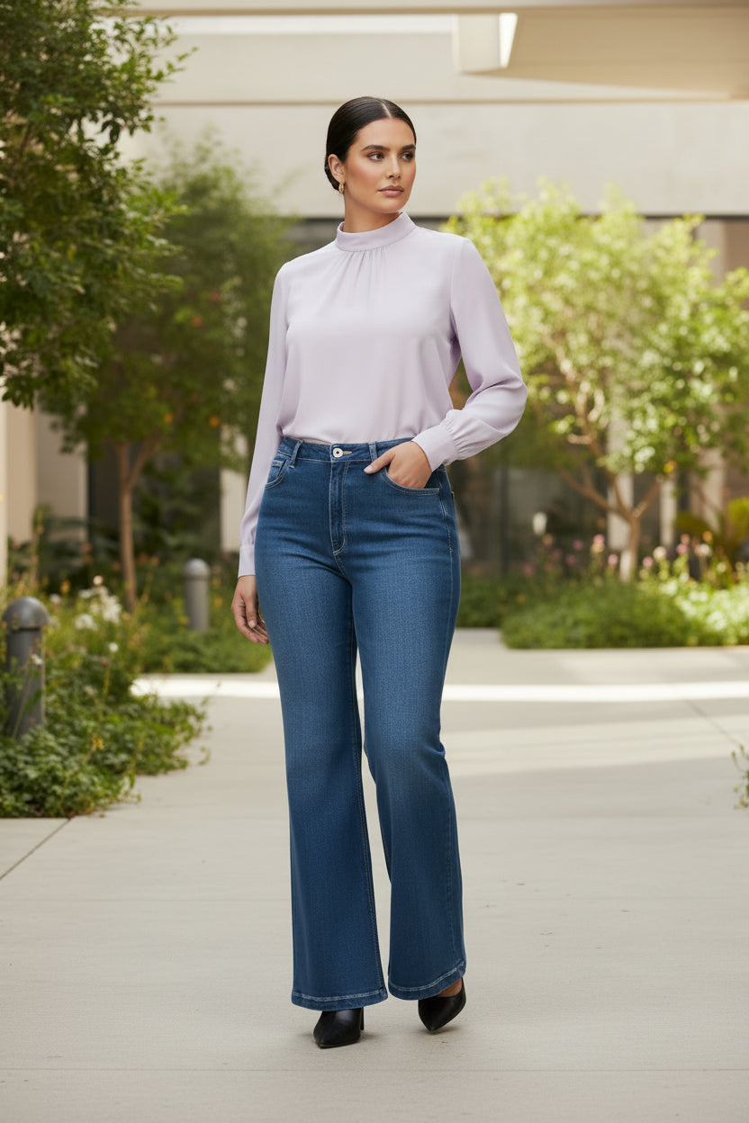 Made with love in Colombia, these wide-leg jeans combine tummy-control technology with luxurious stretch fabric for a fit that celebrates your curves. Perfect for every occasion, they redefine comfort and style by proving it’s not about changing your hips—it’s about elevating them.